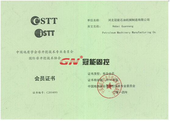 熱烈祝賀河北冠能成功加入CSTT會員,CSTT-中國地質學會非開挖技術專業(yè)委員會正式成立于1998年,同年加盟國際非開挖技術協(xié)會(ISTT),是我國成為26個國際會員國之一。目前協(xié)會掛靠于國土資源部,并得到科技部和建設部的大力支持。中國地質學會非開挖技術專業(yè)委是我國在全國開展非開挖技術活動的合法民間組織,并相繼協(xié)助成立了北京、上海和廣東等地方性非開挖技術協(xié)會。