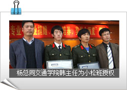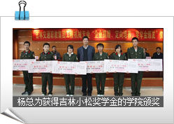 楊燁煬董事長為工程機械系10307、10308班冠名“吉林小松2010(1)班”、 “吉林小松2010(2)班”并授牌,同時,為2009-2010學年獲得“吉林小松獎學金”的獲獎學生頒發(fā)獎金和突出貢獻獎!